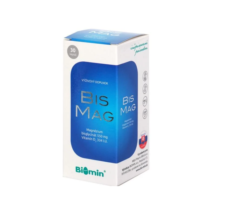 BisMag kapsule, sa 110mg čistog magnezijuma, koji je neophodan za postizanje mentalne opuštenosti i relaksacije, kod nesanice, nervoze, stresa i anksioznosti. Koristi se kod hroničnog bola i napetosti (hipertonusa) mišića.