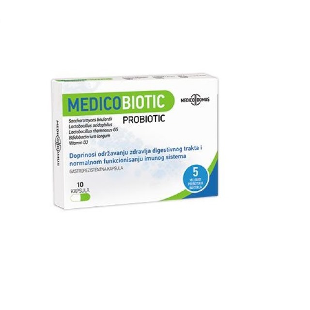 Medicobiotic je preparat koji pomaže kod dijareje i nadutosti, u toku i nakon primene antibiotika, za vreme putovanja, kod inflamatornih bolesti creva. Sadrži kombinaciju probiotskih bakterija i probiotskog kvasca koja doprinosi uspostavljanju i održavanju uravnotežene i zdrave crevne mikroflore, imunskog sistema ljudi i pokretljivosti creva.